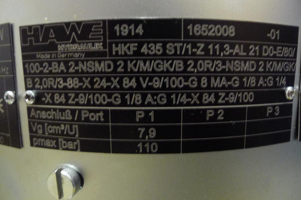 HKF 435 ST/1-Z11,3-AL 21D 0-E/80/100-2 -BA 2-NSMD 2 K/M /GK/B 2,0R/3 -NSMD 2 K/M /GK/B 2,0R/3-88-X 24 -X 84 V-9/100 an M von Endplatte -3 x 400/230 V 50 Hz -G 8 M an M1 vom AL -Stecker an SMD-Regler L5K -G 1/8 A:G 1/4-X 84 Z-9/100 an MX -G 1/8 A:G 1/4-X 84 Z-9/100 an MX Zweiter Temp.-Schalter 7912 060 Kompakt-Pumpenaggregate D 7600-4 (09/2012-00) Artickelnummer: Bestellkode: Mitgliederkategorien: Hydraulikaggregate / Aggregate HAWE / HK, HKF